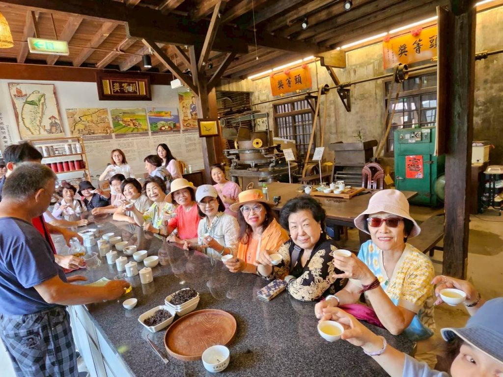 此次活動,我們造訪百年茶廠富興茶業文化館,順著有著巴洛克裝飾石柱的建築,進入古色古香的日治時期老宅,茶廠主人在介紹完製茶過程及茶廠歷史後,熱情的招待品嚐東方美人茶。