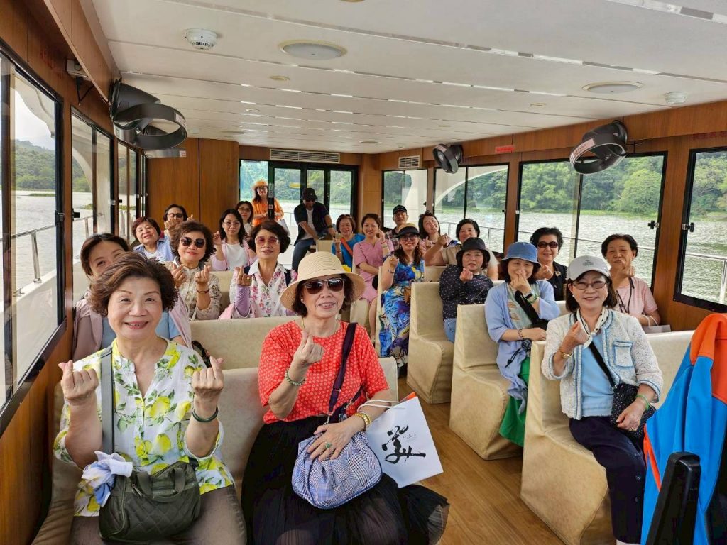 在品茗後,我們延著富興老街,漫步至美麗的峨嵋湖,搭程遊艇欣賞湖面美景,依山傍水,彌勒佛相伴,猶如世外桃源,好是愜意。