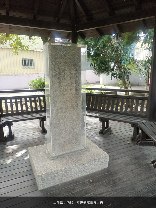 歷經時間的洪流洗滌,這些「土牛溝」、「土牛堆」幾乎消失殆盡,不過在土牛國小內還有一塊「奉憲勘定地界」碑。這塊立於清乾隆26年(1761)的漢原地界碑,詳細記載了緣由,土牛與土牛溝的長度、數量、形制等,可說是全臺僅存詳載清廷劃設漢原界線的最重要文物。